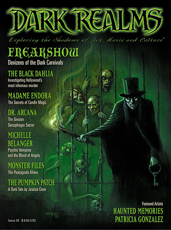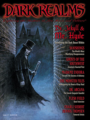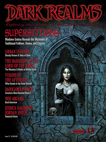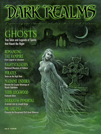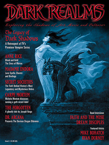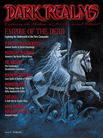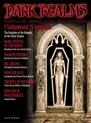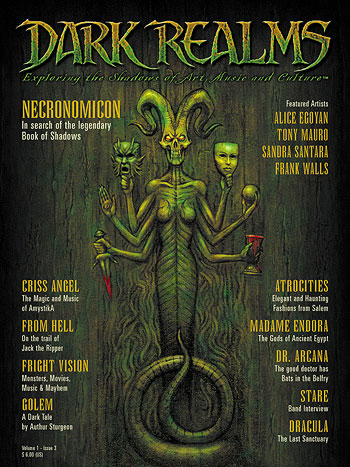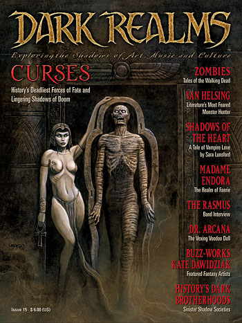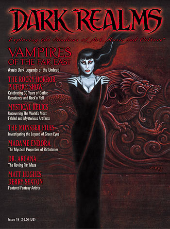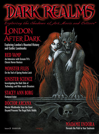 We were very thrilled to receive our copies of Dark Realms and we were likewise impressed by the continued quality of your magazine! I also wanted to compliment you once again on the Madame Endora palmistry spread. That was very cool! I really like the way that four-page feature turned out. Goth 101 was nice too!
