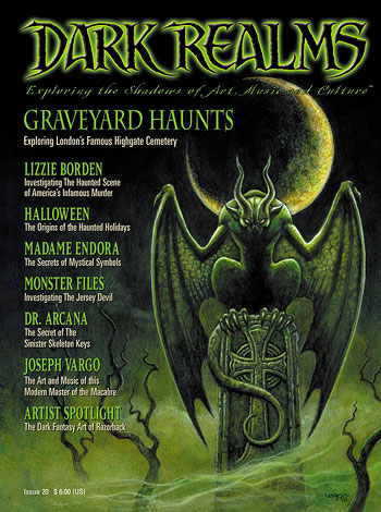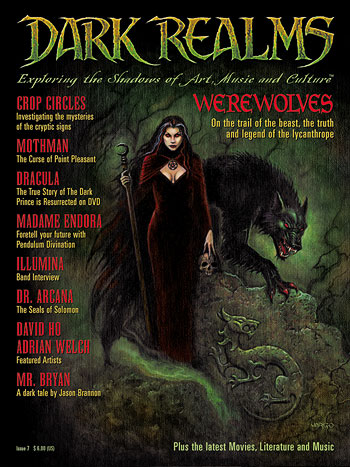 To everyone at Dark Realms: Just wanted to say "WOW!" I've received my first issue today (18) and I haven't been able to put it down. I'm like a kid in a candy store. I am thoroughly impressed with the professional quality of it all (the in depth research, the variety of the articles, the gorgeous artwork, and even the glossy paper!) Congratulations on creating such a ghoulishly delicious magazine for all of us who revel in the darkness and the occult. This is one magazine that will be read from cover to cover in our household!! Thank you!